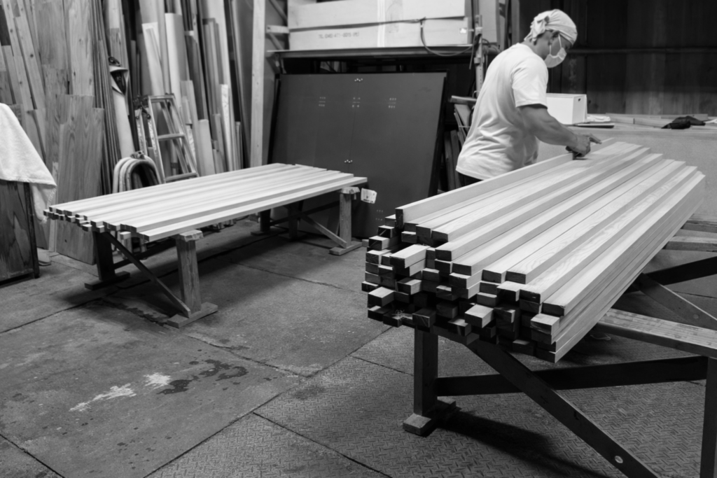 内装は無垢材を格子状に張り、やわらかな陰影が生まれるように。